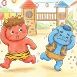 節分の赤鬼と青鬼を子供にも親しみのある可愛らしいイラスト画像です。